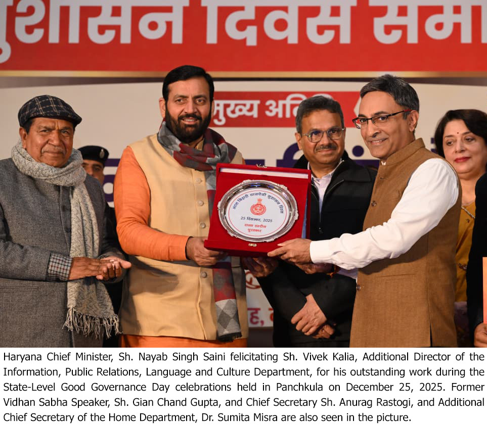 पंचकूला , 25 दिसंबर – हरियाणा के मुख्यमंत्री श्री नायब सिंह सैनी ने पारदर्शी, जवाबदेह और नागरिक-केंद्रित प्रशासन के प्रति सरकार की प्रतिबद्धता को दोहराते हुए कहा कि सुशासन एक विकसित भारत और एक विकसित हरियाणा बनाने के लिए सबसे मजबूत स्तंभ है। राज्य सरकार अपनी सेवाओं को एक मिशन के रूप में ले रही है और हम ऐसा हरियाणा बनाने के लिए संकल्पबद्ध हैं, जहां न्याय सुलभ हो, सेवा त्वरित हो और हर नागरिक सशक्त हो, यही सच्चा सुशासन है।