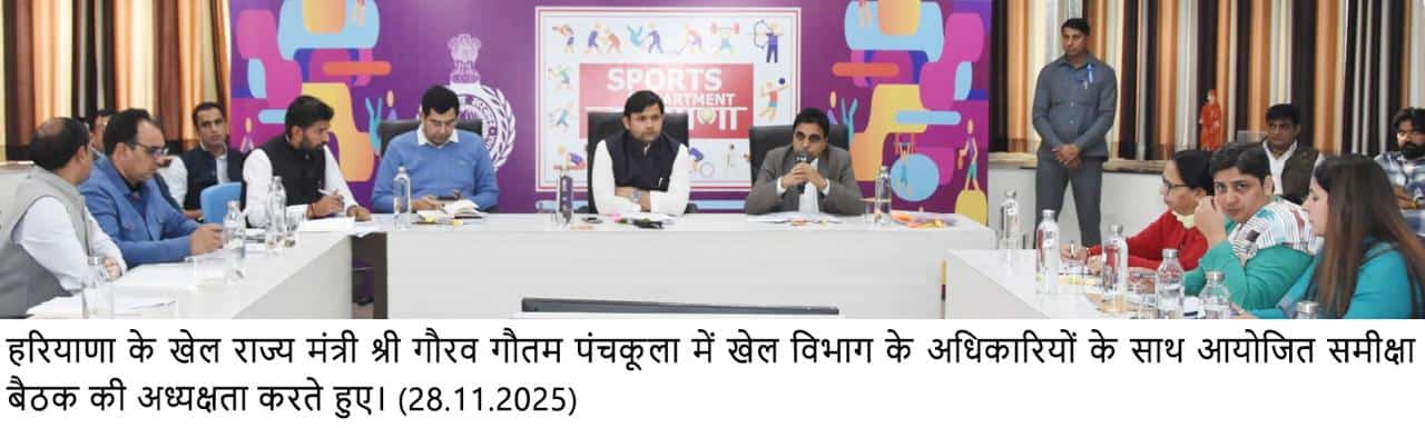 पंचकूला नवंबर- 28 हरियाणा के खेल राज्यमंत्री श्री गौरव गौतम ने कहा कि हरियाणा की खेल नीति आज पूरे देश में एक मॉडल के रूप में स्थापित हो चुकी है। प्रदेश सरकार खिलाड़ियों को विश्वस्तरीय सुविधाएं, सुरक्षित खेल मैदान और उत्कृष्ट उपकरण उपलब्ध करवाने के लिए पूर्ण प्रतिबद्धता के साथ कार्य कर रही है। हाल ही में प्रदेश में दो खिलाड़ियों की मृत्यु की दर्दनाक घटनाओं पर गंभीर चिंता व्यक्त करते हुए उन्होंने कहा कि भविष्य में ऐसी कोई भी अप्रिय स्थिति न हो, इसके लिए खेल विभाग ने कठोर और ठोस कदम उठाए हैं।